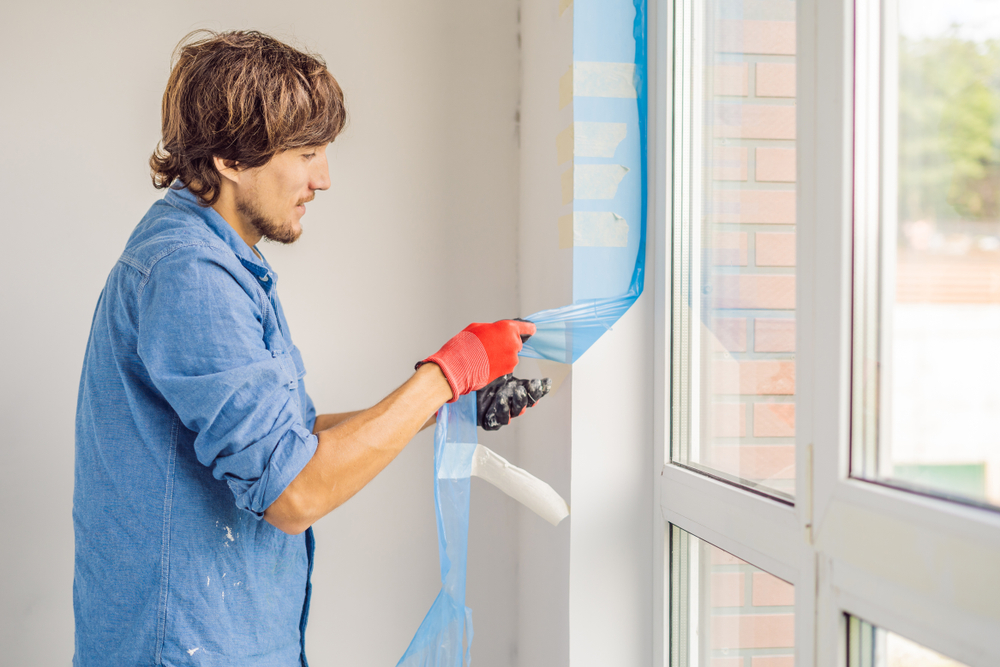 Man,In,A,Blue,Shirt,Does,Window,Installation